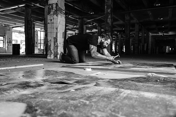 The art is inspired by the urban decay, time-worn doors, derelict buildings, worn streets and the aging effects of the elements.