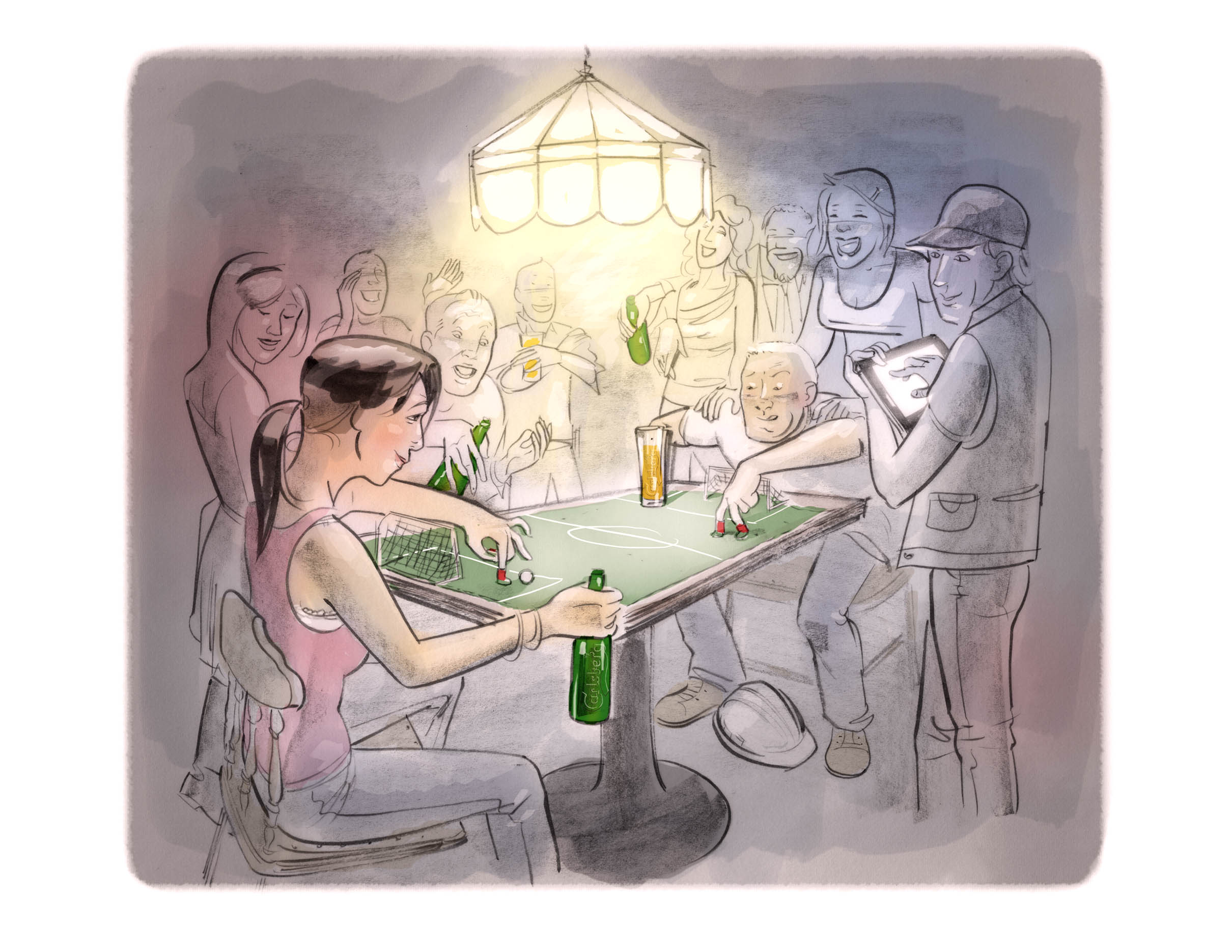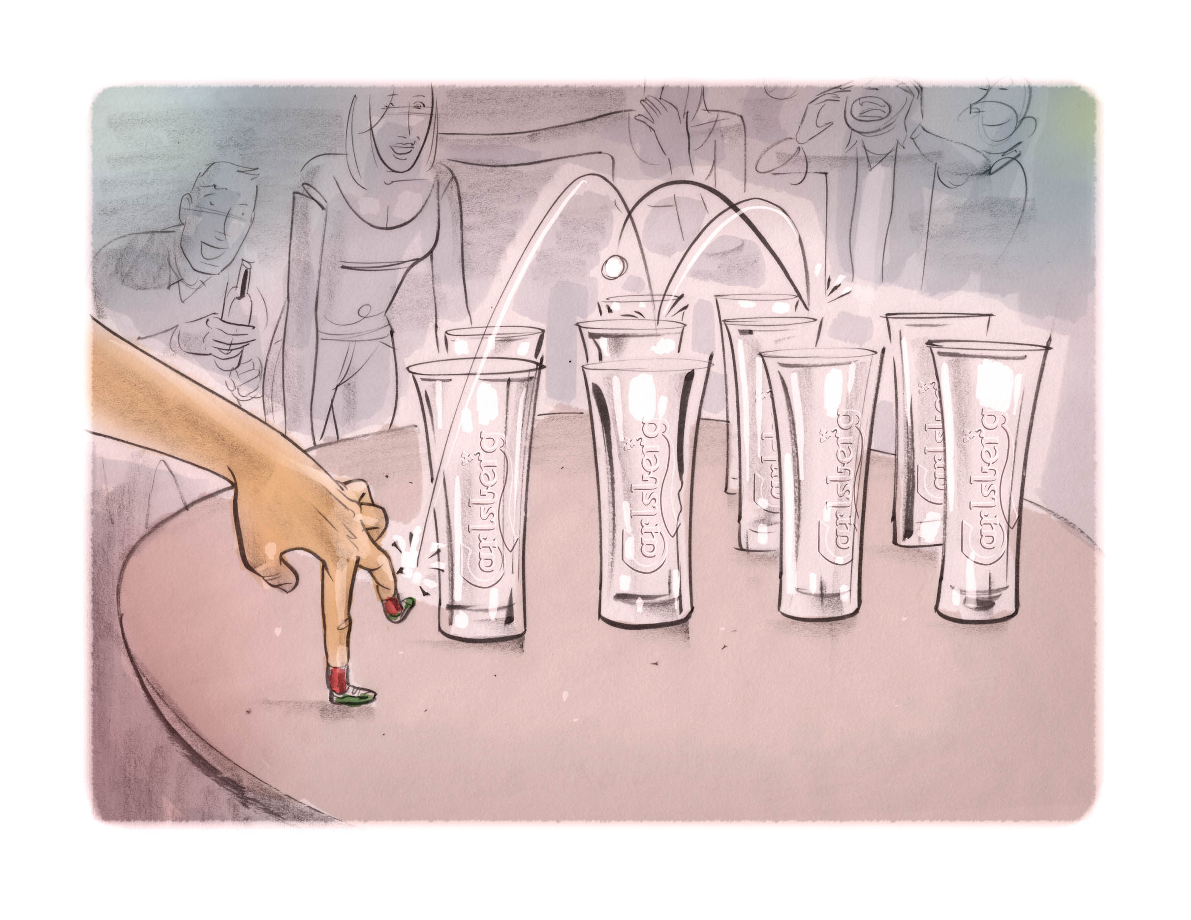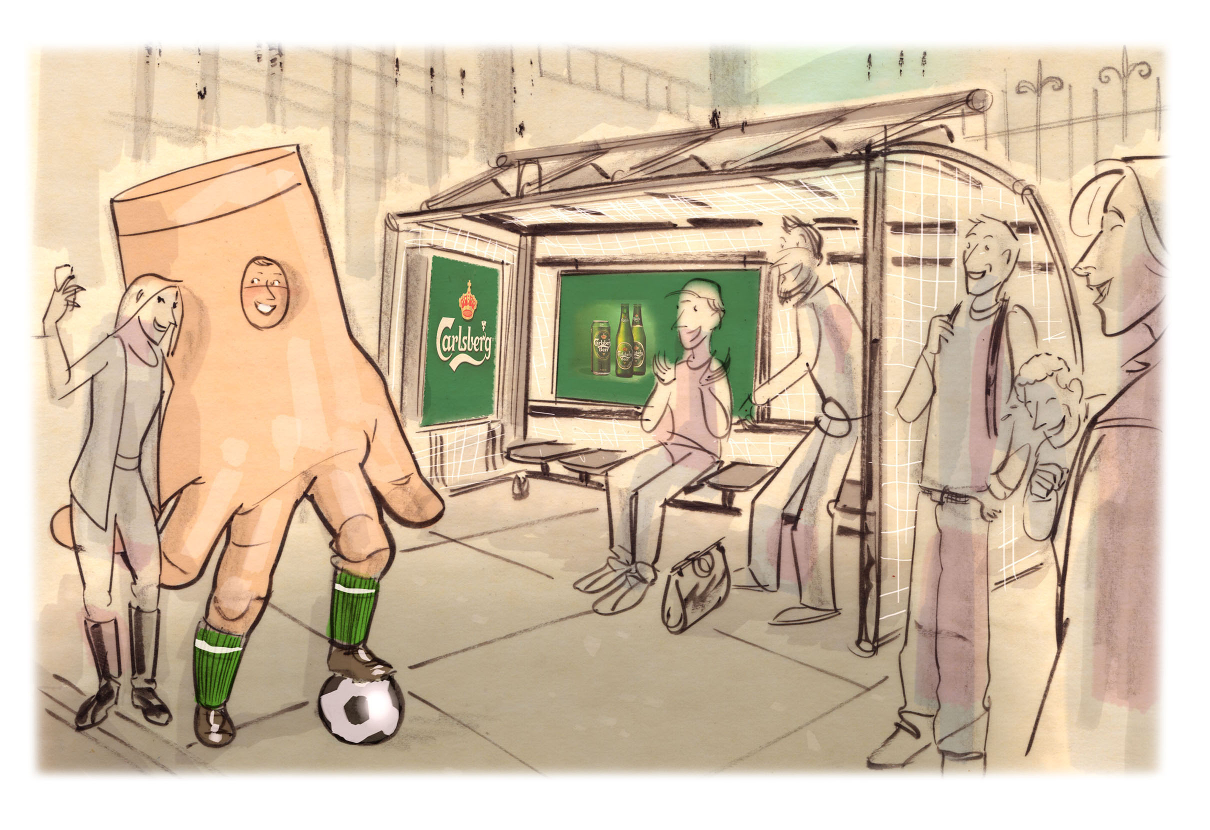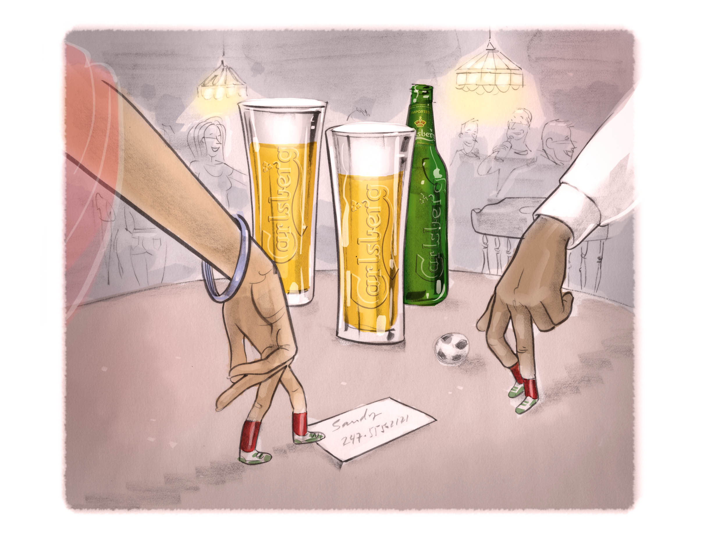 The Finger Footie concept was created to help fans celebrate Carlsberg's partnership with the European Cup. The ideation created an engagement for supporters to play a mini cup anywhere. The Carlsberg Finger Footie beer coasters were available local pubs and Finger Footie Kits were included within special Euro Cup beer multipacks.