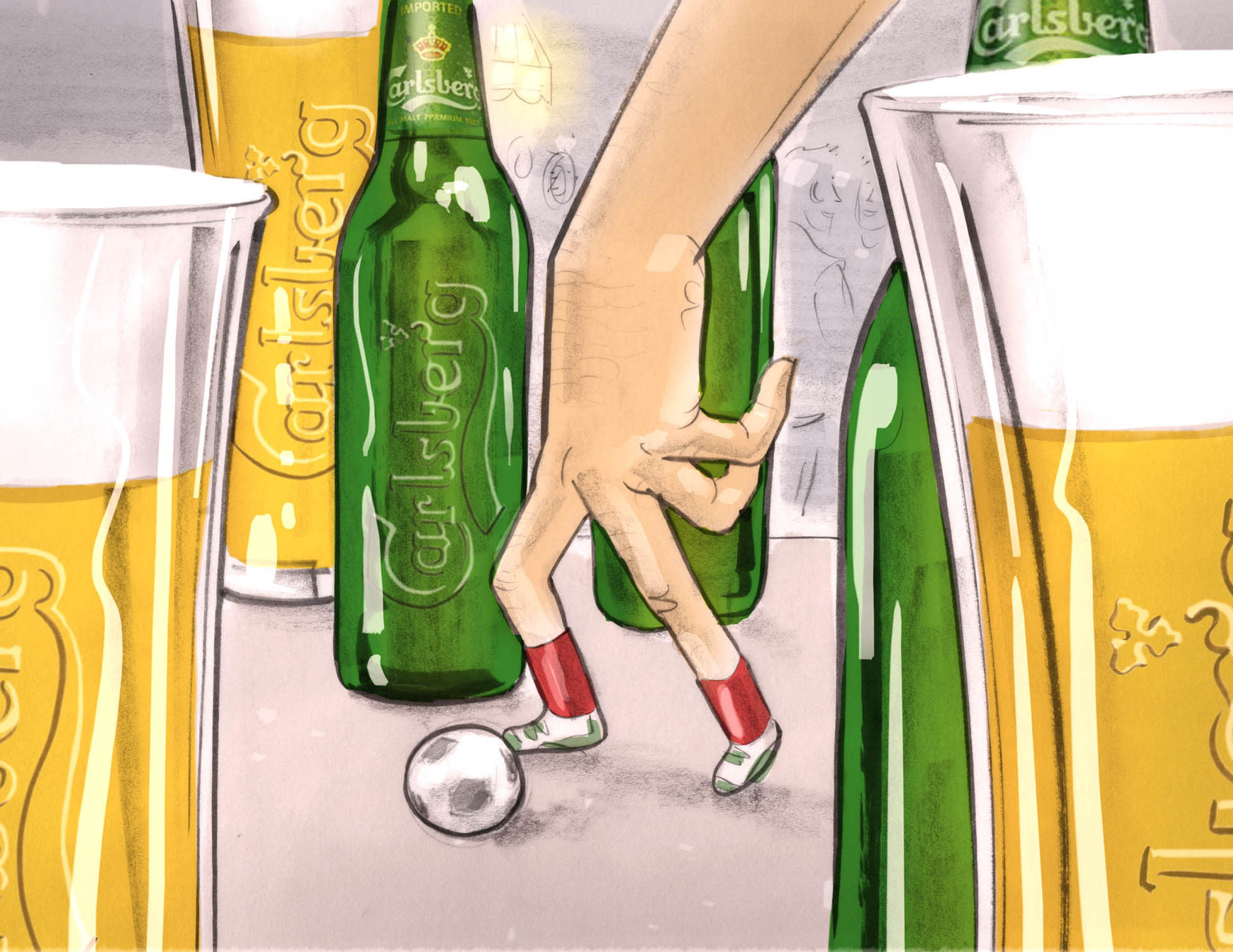 The Finger Footie concept was created to help fans celebrate Carlsberg's partnership with the European Cup. The ideation created an engagement for supporters to play a mini cup anywhere. The Carlsberg Finger Footie beer coasters were available local pubs and Finger Footie Kits were included within special Euro Cup beer multipacks.