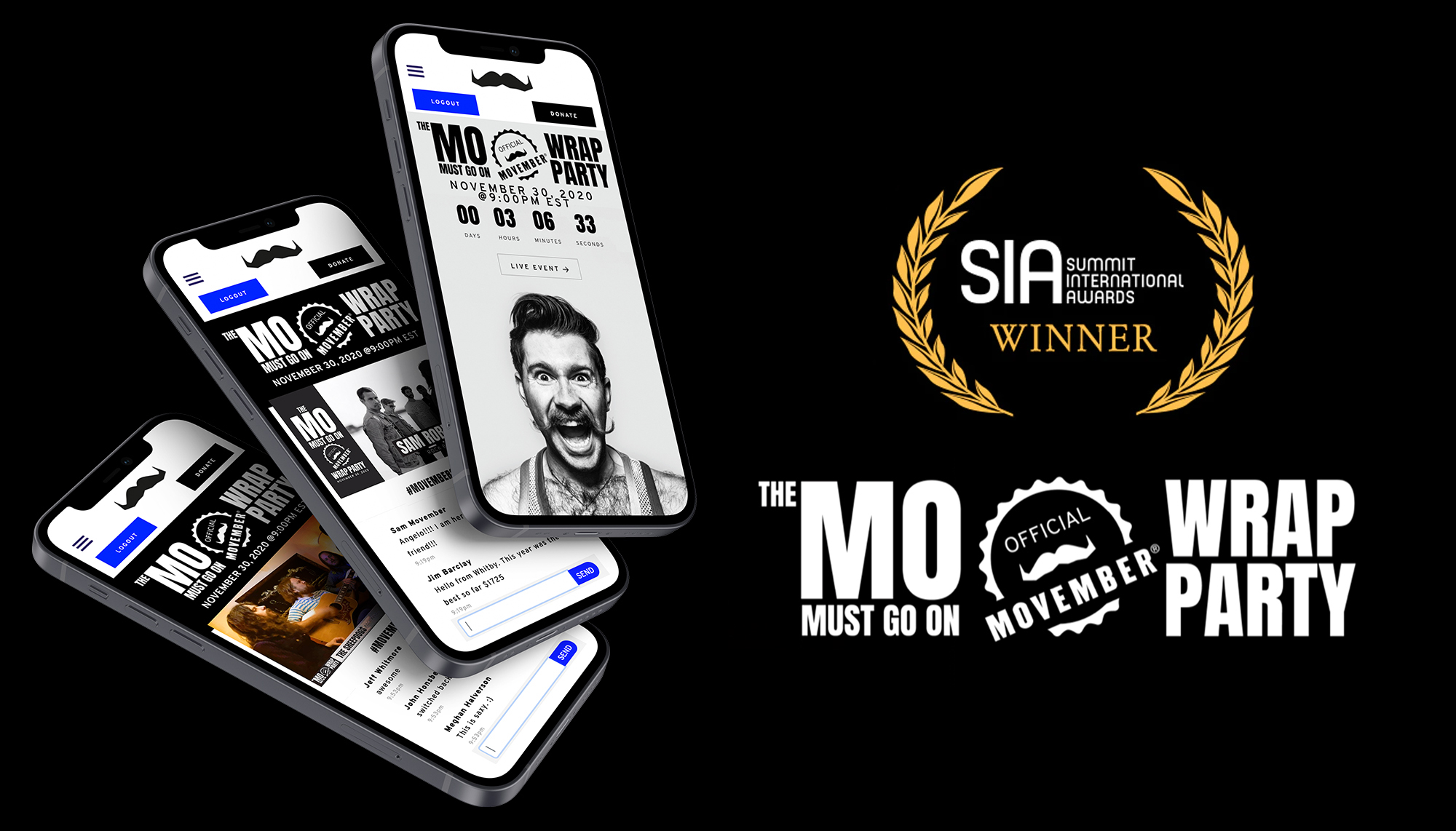 GOLD WINNER! At The Summit Awards 2021. Coronavirus Consumer Campaign. “The Mo Must Go On!!” In 2020, I led the creative team at Elite Digital and had the honour and pleasure of working with Movember Canada. We created a fully immersive live-stream event, web build, animation, design and edit. The experience ensured that the Movember community and donors came together 'virtually' to celebrate men's health. The stream was hosted by the Canadian comedian Tyrone Edwards and featured performances by Sam Roberts, The Sheepdogs, Owen Barney and more. Elite Digital is incredibly proud to not only help and support Movember Canada, but we are also proud to help raise awareness for men's physical and mental health. Be sure to keep the conversation going year-round.