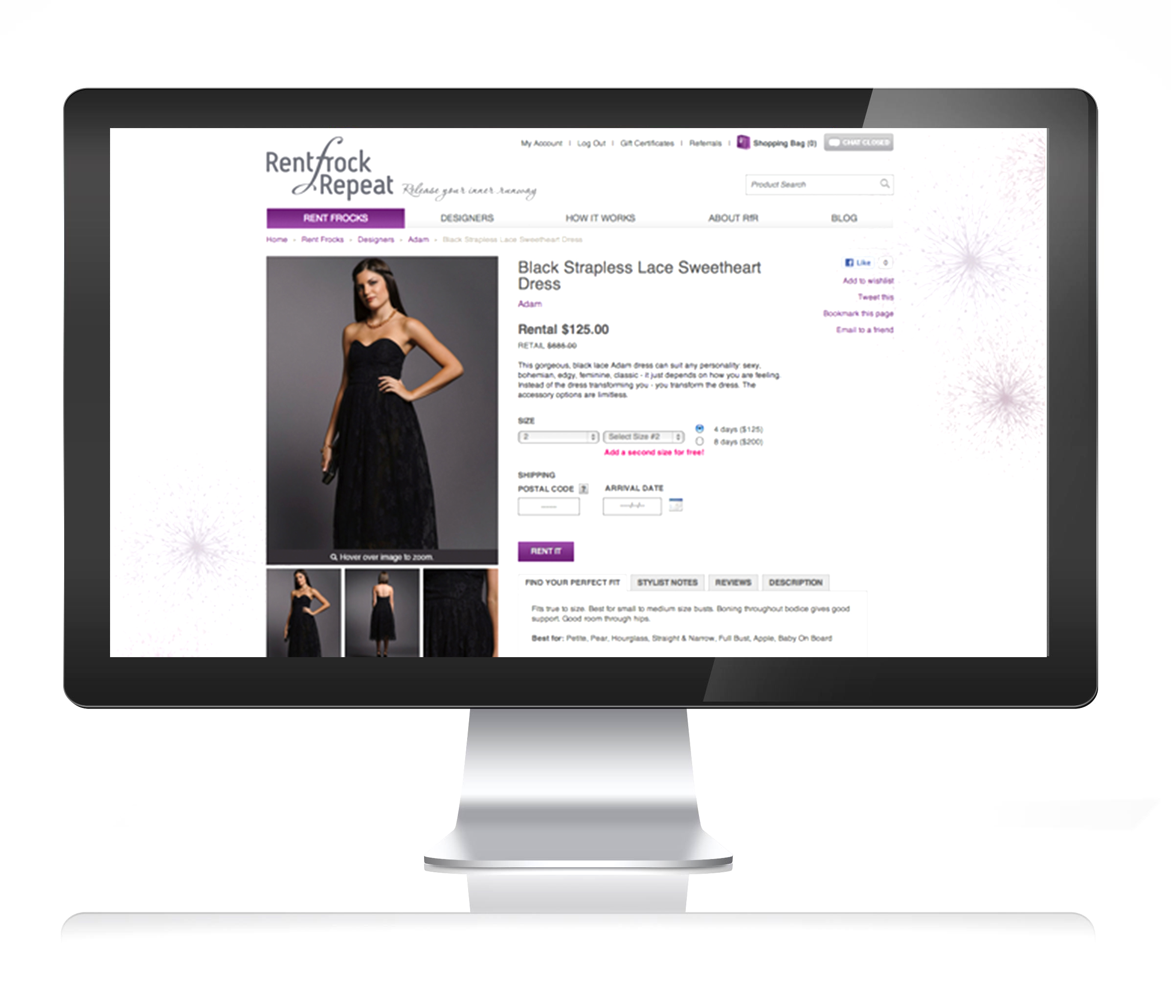 In 2010, Rent frock Repeat (RfR) was a newly incorporated company with a Canadian take on the luxury dress rental business model. After an in-depth market research phase and strategic business planning that included stakeholder interviews, focus groups, and technographic profiling, a brand vision and strategy were developed for RfR. The brand solution became the DNA of the RfR experience. Everything from the brand promise, mission statement, visual identity and complimenting elements, to the custom-tailored e-commerce solution and go-to-market strategies. In 2011 RfR was brought to life with a brand that women could easily identify with on an emotional and aspirational level. PR and social media awareness tactics were used to introduce the brand into the Canadian market place. The result is a brand that is refined, elegant, reliable, yet fun and approachable. A girl’s best friend.