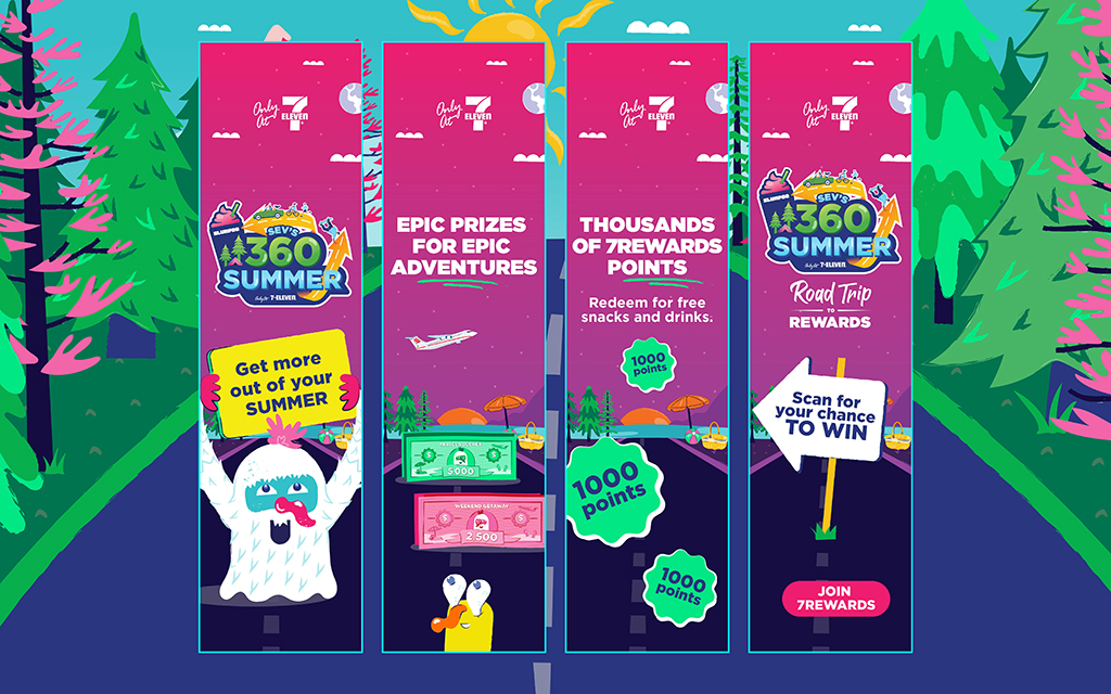 Summer is the time to explore everything Canada has to offer from mountains to lakes, the adventures are endless. So why not stop into a 7-Eleven to fuel up your summer road trips and enter for a chance to make your summer even better? Sev’s 360 Summer Road Trip to Rewards campaign offered Canadian consumers from British Columbia to Ontario a chance to WIN awesome prizes from action cameras to fantastic summer vacations. We invited 7-Eleven customers, 7Rewards app users, Slurpee fans to simply download the 7-Eleven app and scan their way to prizes like $5000 travel vouchers, HD action cameras, and free 7Rewards points to be redeemed for summer treats. The campaign resulted in a 33% increase in brand trust among consumers who viewed the TV spot, along with over 34 million total digital impressions. The creative executions spanned digital, in-store, and broadcast, inviting 7-Eleven customers to enter the Road Trip to Rewards contest for a chance to win amazing prizes all summer long.