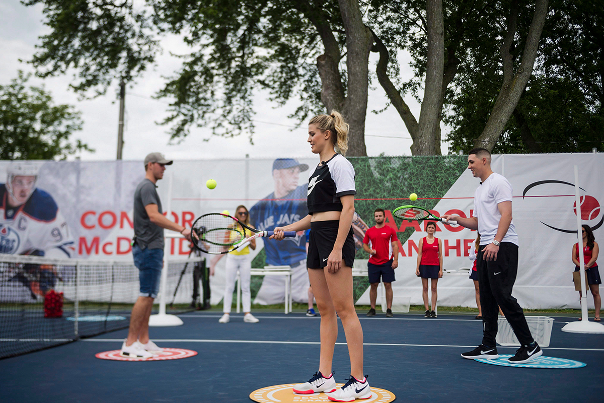 Whilst working as creative director for SDIMKTG in Toronto, I was given to opportunity to help kick off the 2017 Rogers cup with a special stunt at Kew Gardens tennis club in the east of Toronto. The stunt was a VIP opportunity for GamePlus members, an ideal media awareness opportunity to promote the upcoming Rogers Cup and a way to bring some of Canada’s sports heroes back into the grassroots community. Rogers GamePlus members exclusive innovation and access to VIP experiences to Tennis, Hockey and Baseball, which gave us an ideal opportunity to invite not only Genie Bouchard (Canadian Tennis Player) but also Aaron Sanchez (Blue Jays Baseball) and Connor McDavid (Edmonton Oilers Hockey). The stunt was a series of five mini ‘minute to win it’ style games, The games were catered to the talents of all the player's abilities, Tennis, Baseball and Hockey and the winner of each game would get to donate $1000 per game to a charity of their choice. With a potential donation of $5000 to a chosen charity on the line, Genie, Aaron, and Connor competed against each other and then pleased the attendees with photo opportunities, autographs and the chance to play alongside their sports heroes.