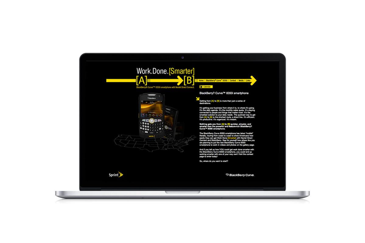 BlackBerry and Sprint challenged us to find a creative and engaging way to educate consumers on the benefits of the Nextel IDEN network and its unique features with the BlackBerry 8350i. The goal was to create demand in the consumer and B2B technology purchasers market. Plus develop buzz within Sprint stores and get the Sprint customer base excited about the new BlackBerry Curve 8350i. Ultimately the business objective was to drive incremental Sprint/BlackBerry net activations. The solution evolved from an idea based on the direct connect feature of the device. The quickest route from A-B is a direct line. This formed the basis of the experiential tour. We simply invited potentially B2B consumers people to meet us at point A (with the guise of a meet and greet breakfast and presentation) then we took the opportunity to educate the audience on the benefits of the Nextel IDEN network that the BlackBerry Curve 8350i and Sprint offered. We did this whilst transporting them to our mobile showroom from Point A to point B. Along the way, the passenger discovered the device’s features by interacting with apps inside and outside of the vehicle. There was an interactive showreel, demo units, education booklets, a tour narration that guide the passengers through each feature at key points of the journey. The tour visited over 30 U.S cities visited 47 stores and created over 4,138,000 impressions. To get a double hit on the usage of the custom fit the touring vehicle, it was also used for consumers to engage with key Sprint stores within along the route.