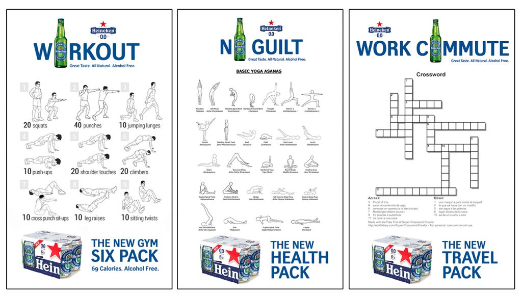 Heineken 0.0 is an alcohol-free alternative for those who still want to enjoy the great taste of Heineken in any occasion. Whilst on contract for SDI, I was given the brief to open up additional sampling touchpoints for Heineken. They didn’t have to be traditional beer moments and could be any time of the day. Heineken 0.0 is disruptive as a beer brand when placed in non-traditional consumer touchpoints for the Heineken brand. Everyday, normal scenarios (traditionally no-go zones for beer) become the perfect scenario to be disrupted by Heineken 0.0. ‘Disruptive, Non-Traditional Beer Brand Sampling’. These traditionally no-go zones for beer brands are everyday scenarios. The target audience becomes; • Health-conscious (gyms, yoga, runners, sport) • Commuters (to and from work) • Office Scenarios (Lunch breaks, meetings)